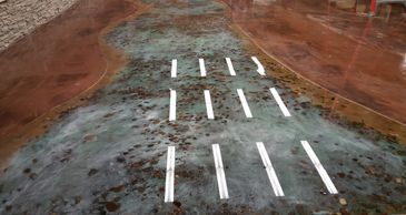 Custom staining, engraving, logos, exposed agg, and complete rehabilitation of concrete in poor condition.
